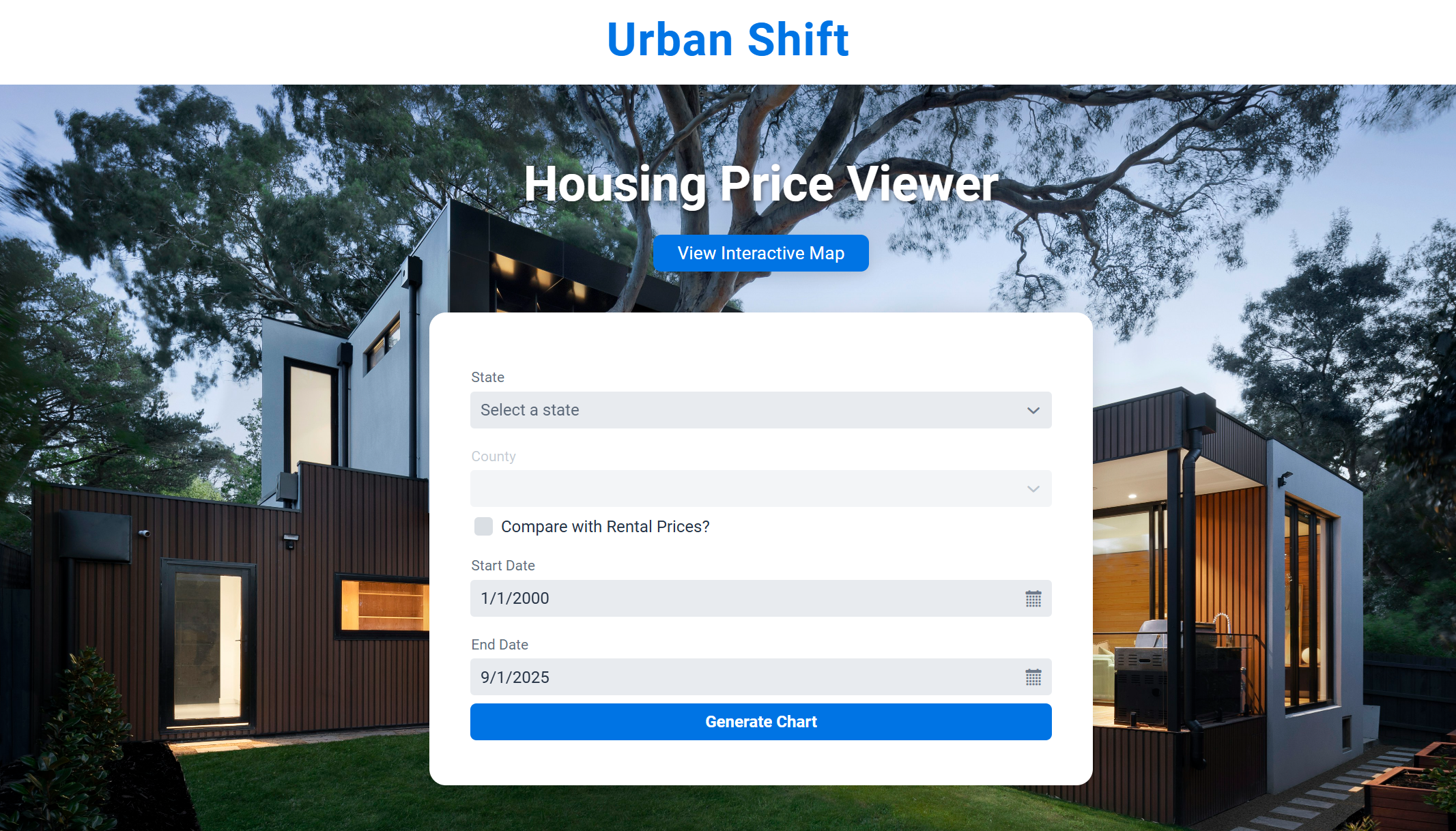 Urban Shift became a web-based application where users can explore long-term housing and rental trends for U.S. counties. The website allows users to select a state and county, pick a date range, and instantly view a line chart that reflects how prices have changed over time. It also includes an interactive national map that groups counties into clusters based on growth behavior. The goal was to create something helpful for students, researchers, or anyone curious about regional housing markets. In the end, the project grew into a tool that highlights patterns and differences across the country in a way that simple spreadsheets cannot.
